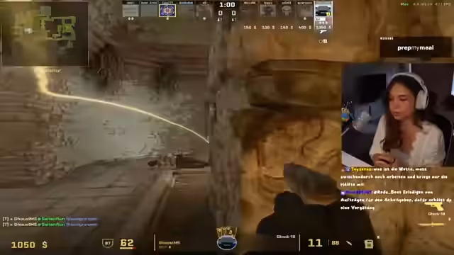 06:01:08Die Spielerin gibt Anweisungen zur Teamkoordination, einschließlich Flashbang-Taktiken und dem Platzieren von Rauchgranaten, um bestimmte Bereiche abzudecken. Es wird über die Positionierung der Spieler auf der Karte diskutiert, wobei die Spielerin spezifische Rollen zuweist und um Unterstützung bittet. Sie äußert Frustration über die mangelnde Kooperation einiger Teammitglieder, insbesondere über das Ignorieren von Anweisungen und das Blockieren ihrer Bewegung. Es wird über die Strategie für die nächste Runde gesprochen, einschließlich des schnellen Angriffs auf bestimmte Punkte und der Verwendung von Rauchgranaten zur Deckung. Die Spielerin reflektiert über ihre eigene Leistung und äußert Unzufriedenheit mit ihrer Fähigkeit, bestimmte Gegner auszuschalten. Sie gibt Anweisungen, wann man pushen soll und wann nicht, und versucht, das Team zu koordinieren, um die Runde zu gewinnen. Die Spielerin äußert ihren Unmut über das Verhalten bestimmter Mitspieler, die ihrer Meinung nach das Spiel sabotieren.