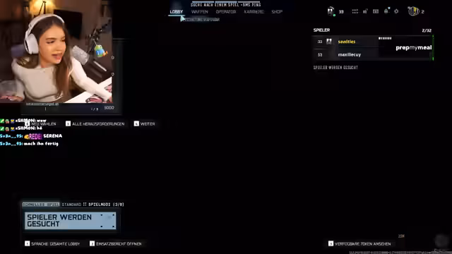 02:11:30Die Streamerin erlebt eine intensive Spielphase, in der sie sich im 'Flow' fühlt und eine 'gute Runde' spielt, obwohl sie Schwierigkeiten hat, Gegner zu finden und oft von hinten angegriffen wird. Sie beklagt sich über einen 'Watchdog' und die ständige Belästigung durch bestimmte Spieler wie 'Schlie'. Nach einer weiteren frustrierenden Runde, in der sie sich über ihre eigene Leistung und die Gegner ärgert, muss eine Teamkollegin, Rina, den Stream verlassen, um in die Küche zu gehen. Die Streamerin und Maxi beschließen, fünf Minuten auf Rina zu warten. Es wird humorvoll darüber gesprochen, ob man 'Viel Spaß auf der Arbeit' sagen darf oder ob das 'fake' klingt. Die Streamerin erwähnt, dass sie noch nie eine Nuke im Spiel gemacht hat und es in solchen Lobbys für unmöglich hält.