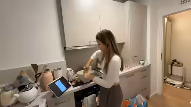 04:25:54Die Streamerin beginnt mit den Vorbereitungen für das Backen von Cookies. Dabei stößt sie auf erste Schwierigkeiten mit ihrem Stativ, das sich nicht öffnen lässt, was zu einer humorvollen Interaktion mit dem Chat führt. Nach mehreren Versuchen und dem Austausch des Stativs, welches sie als „scheiß Stativ“ bezeichnet, geht es weiter mit dem Rezept. Ein weiterer Stolperstein ist die Suche nach den richtigen Zutaten: Zuerst findet sie das benötigte Rezept nicht mehr und muss es sich per Airdrop von ihrem Handy auf das iPad übertragen. Dann stellt sie fest, dass sie keinen braunen Zucker, sondern nur braunen Rohrzucker hat, und ist unsicher, ob das einen Unterschied macht. Die größte Herausforderung ist jedoch die Suche nach weißem Zucker, den sie trotz intensiver Suche nicht finden kann. Sie überlegt sogar, ihre Nachbarn zu fragen, was ihr sichtlich unangenehm ist. Schließlich findet sie den weißen Zucker an einer unerwarteten Stelle, hinter anderen Behältern versteckt.
