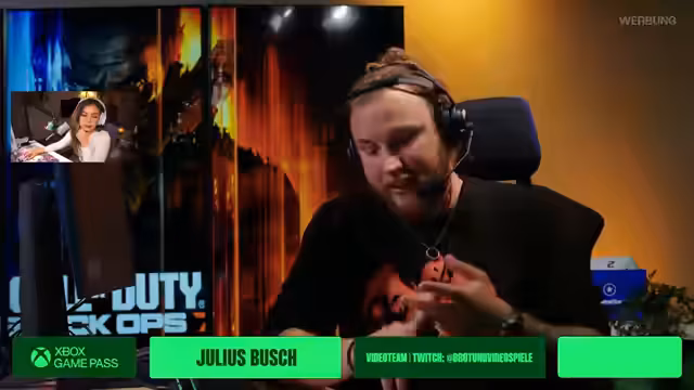 05:55:57Nach dem Posten der Story beginnt die Streamerin mit den Vorbereitungen für den Black Ops 7 Stream. Sie muss kurzfristig technische Einstellungen an ihrem Stream vornehmen und nimmt an einem Briefing-Call teil. Während des Calls stellt sich heraus, dass es Probleme mit der Codierung gibt, was zu Lags im Stream führt. Die Streamerin versucht, die Videoeinstellungen zu reduzieren und Hintergrundanwendungen zu schließen, um die Performance zu verbessern. Trotz der technischen Schwierigkeiten wird der gemeinsame Chat mit den Gästen eingerichtet. Die Streamerin entschuldigt sich für die Umstände, während die Regie und die anderen Teilnehmer bereit sind, das Intro für die Xbox Game Pass Show zu starten. Das Intro leitet die erste Xbox Game Pass Show dieses Winters ein, bei der Call of Duty Black Ops 7 vorgestellt und durch alle Modi gespielt wird.