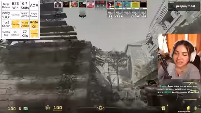 01:45:10Zu Beginn des Streams startet das aktuelle Spiel mit taktischen Absprachen für die ersten Runden. Der Fokus liegt auf der Mitte, bei der eine aggressive Short-Strategie geplant wird, die auf eine Rauchgranaten-Wartezeit angewiesen ist. Spieler reagieren auf gegnerische Aktionen im Chat und im eigenen Team, wobei die Situation in der Mitte als unübersichtlich beschrieben wird. Es werden Versuche unternommen, den Gegner durch kurze Vorstöße und Rauchgranaten-Einsätze zu provozieren und zu kontrollieren.