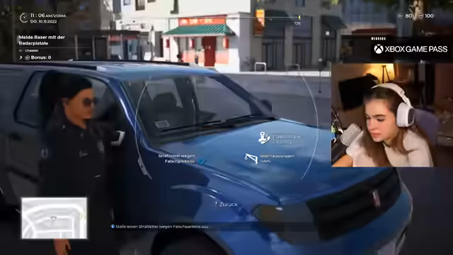 04:01:06Nach dem Schichtbeginn erkundet das Streamer-Duo einen neuen Bereich. Dabei werden die Grundlagen der neuen Nachbarschaft und die allgemeine Spielumgebung erkundet. Ein entscheidender Meilenstein ist das Freischalten eines neuen Einsatztyps: das Melden von Rasern. Dies wird mit der neu erhaltenen Radarpistole realisiert, die dem Spieler Blitzen und Radarfallen einrichten ermöglicht. Die Entdeckung dieser Funktion löst große Begeisterung aus.