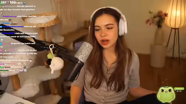 02:22:25Die Streamerin erleidet einen ungewöhnlichen und von ihr selbst als 'scary' und todesscary' beschriebenen Voice-Track, worüber sie selbst verunsichert ist. Danach spricht sie offen über ihre monatlichen Beschwerden, die gerade begonnen haben und die sie als sehr unangenehm empfindet, mit Bauchschmerzen und Rückenschmerzen. Sie äußert die Sorge, dass langes Zocken während der Gamescom-Lan ihre Schmerzen verschlimmern könnte. Sie reflektiert über Hormone und ihre Auswirkungen auf die Stimmung und gibt zu, dass sie in der Vergangenheit starke Stimmungsschwankungen hatte, diese heute aber besser kontrolliert.