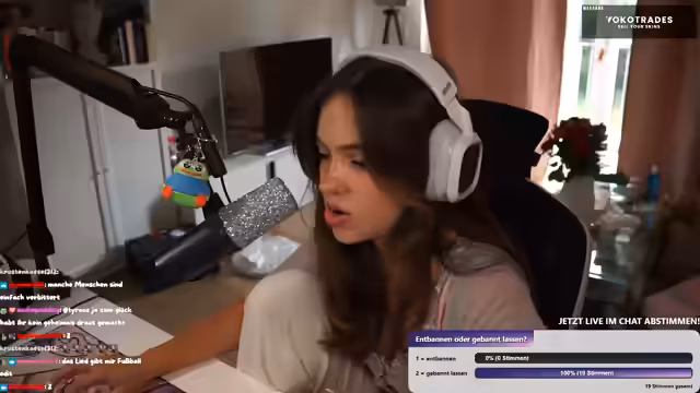 01:04:50Es werden Entbannungsanträge von Zuschauern behandelt, die teils bizarre Nachrichten im Chat hinterlassen haben. Ein Nutzer namens Andy, der nur 10 Minuten zuschaute, erklärte seine Liebe und forderte das Geburtsdatum. Ein anderer User schrieb über Pläne, falls Streaming nicht mehr möglich wäre und äußerte sich zu Sonnencreme und dem Aussehen der Streamerin. Er kritisierte ihr Outfit und verglich sie mit ihrer Schwester, was jedoch auf einer Verwechslung beruhte. Die Streamerin zeigte sich verwundert über solche Kommentare und betonte, dass sie tragen solle, was sie wolle. Sie wies darauf hin, dass Kritik konstruktiv sein sollte und sie sich niemals mit jemandem einlassen würde, der ihr vorschreibt, was sie anzuziehen hat. Solche Vergleiche mit anderen Frauen seien 'cringe'.