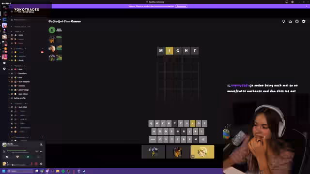03:08:08Die Streamerin initiiert eine Wordle-Session mit dem Chat und zeigt das Spielprinzip. Sie demonstriert, wie man Buchstaben kombiniert und Hinweise nutzt, um das richtige Wort zu erraten. Dabei erklärt sie die Bedeutung der Farben Grau, Gelb und Grün für die Buchstaben. Die Community beteiligt sich aktiv am Spiel, was die Session interaktiv und unterhaltsam gestaltet. Es wird überlegt, wo man Wordle spielen kann, sowohl auf Discord als auch auf Webseiten. Abschließend wird die Community ermutigt, das Spiel mit Freunden zu spielen, da es als unterhaltsam und fesselnd empfunden wird. Die Streamerin plant, sich das Spielprinzip zu merken, um es später selbst zu nutzen.