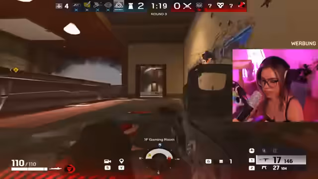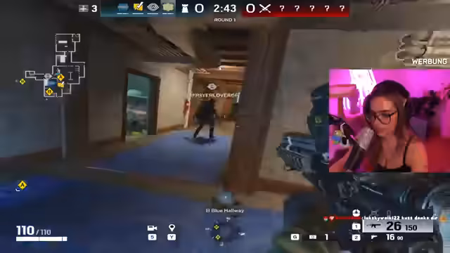 02:49:59Zu Beginn des Streams findet der Streamer einen Gegner am Spawn, der auf 1-Pink peekt, und erzielt einen Kill. Kurze Zeit später entsteht eine hektische Situation, in der der Streamer und ein Teammit versehentlich gegenseitig im Weg stehen, was zu einem Teamkill führt. Der Streamer distanziert sich sofort und entschuldigt sich, da das Risiko für Teamkills in engen Räumen hoch ist. Die Anfangsphase der Runde ist als defensivlastig zu charakterisieren und erfordert eine genaue Platzierung von Teammitgliedern, um die Angreifer aufzuhalten.