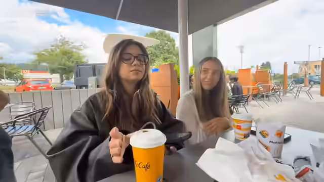 01:44:13Die Streamer erreichen das Restaurant und nutzen den McDrive. Sie planen, einen Großteil des neuen Menüs zu probieren. Es gibt jedoch einige Probleme mit der Verfügbarkeit von bestimmten Artikeln, wie dem Sakura-Getränk und dem neuen Shake. Auch die Bestellung einer normalen Cola gestaltet sich schwierig, da diese nur in der kleinen Größe verfügbar ist. Trotzdem bestellt eine Vielzahl von Burgern, Nuggets, Pommes, Saucen und Getränken. Sie erklären, dass sie das gesamte Menü testen möchten.