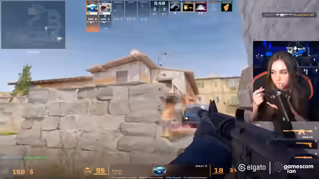 00:26:24Nachdem die technischen Pannen vorerst behoben und der fünfte Spieler nach einem BIOS-Update nachrücken konnte, kann das CS-Turnier beginnen. Die Konfrontation mit dem ersten Gegnerteam verläuft jedoch holprig. Die Kommunikation und das Teamplay sind anfangs unkoordiniert. Trotzdem gelingt es dem Team, die ersten beiden Runden für sich zu entscheiden und den Gegner, der aus hochrangigeren Spielern besteht, mit einem Score von 2:0 zu bezwingen. Dieser Sieg wird im Stream als unerwartet und dennoch erfolgreich gewertet.