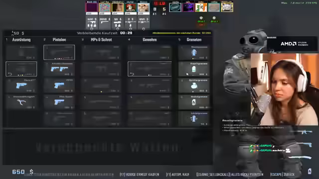 04:52:02Im weiteren Verlauf des Streams äußert der Streamer anhaltenden Leistungsdruck, da viele Zuschauer zuschauen. Dieser Druck führt zu mehreren Fehlern im Gameplay, insbesondere im Umgang mit Rauchgranaten (smokes), die inkonsistent und daher wirkungslos sind. Es kommt zu kritischen Situationen, in denen die Gegner ungestört agieren können, weil die Abdeckung durch die Rauchgranaten fehlschlägt und die strategische Planspiele der Teammates ineffektiv sind.