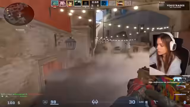 04:55:49Der Streamer geht detailliert auf taktische Entscheidungen während eines Spiels ein. Er kommuniziert mit seinem Team über Positionen, Rauchgranaten-Setzungen und das Angreifen bestimmter Bereiche. Er beschreibt komplexe Spielzüge wie das Setzen von Rauchgranaten in A und das Koordinieren von Flank-Angriffen. Die Kommunikation unter den Teammitgliedern scheint jedoch nicht immer optimal zu laufen.
