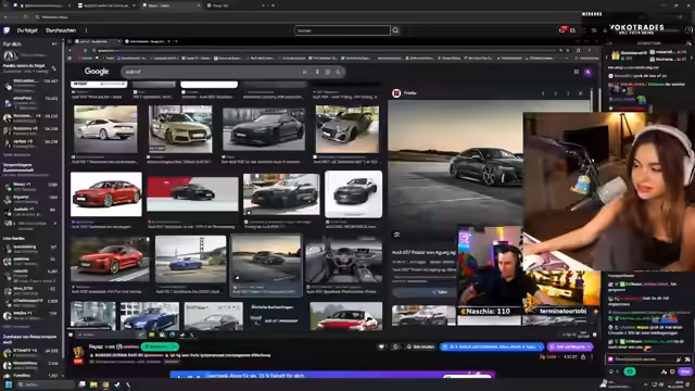 06:47:57Die Streamer wechseln das Thema zu Autos und bitten den Chat um Empfehlungen für ein neues Fahrzeug. Es werden verschiedene Modelle wie der Audi RS5 und RS3 diskutiert, wobei die Ästhetik, insbesondere das Wabenmuster am Kühlergrill, gelobt wird. Die Kosten und der Wertverlust von Neuwagen im Vergleich zu Gebrauchtwagen werden angesprochen. Es wird auch über die hohen Versicherungskosten und Ersatzteilpreise von Luxusautos gesprochen. Die Vorliebe für schnelle und sportliche Autos wird deutlich, und es werden Modelle wie die Toyota Supra und der BMW M4 erwähnt. Eine Diskussion über die Ästhetik von Mercedes im Vergleich zu BMW und Audi entbrennt, wobei ein Streamer Mercedes als 'Rentnerauto' bezeichnet. Die Diskussion über Autos führt zu kulinarischen Gelüsten, insbesondere nach Fast Food wie McDonald's und Subway, wobei spezifische Burger und Sandwiches erwähnt werden. Ein humorvoller Austausch über den 'Hütten Gaudi' Burger und einen Clip von Trimax, der sich darüber aufregt, rundet das Thema ab.