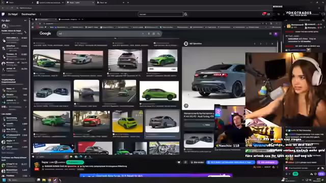 07:06:22Die Streamer sprechen über die Auswirkungen von Bekanntheit, insbesondere über Begegnungen mit Fans, die sie als 'TikToker' oder 'Streamer' erkennen und sie sogar siezen. Eine Situation, in der ein Streamer von 14 Kindern umschwärmt wurde, wird als 'Next Level' und 'wild' beschrieben. Die Diskussion kehrt zu Autos zurück, wobei die Vorliebe für Limousinen und Coupés gegenüber Sportbacks betont wird, obwohl Sportbacks als praktischer gelten. Es wird über die Ästhetik von Autos gesprochen, wobei ein 'böses' Aussehen bevorzugt wird. Verschiedene Audi-Modelle wie der RS5, RS6 und RS7 werden verglichen, wobei die Größe und Länge des RS7 als unpraktisch empfunden wird. Die Streamer äußern ihre persönlichen Vorlieben und Abneigungen bezüglich bestimmter Fahrzeugtypen und -designs, wobei die Community ebenfalls ihre Meinungen teilt und die Diskussion über Auto-Tuning und dessen Wertverlust fortgesetzt wird.