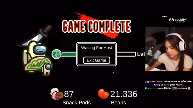 04:40:49Nachdem ein Spieler durch ein Missverständnis aus dem Spiel geworfen wurde, stellt sich heraus, dass eine andere Person, die vorgegeben hat, in einer Halle festgesessen zu haben, die Wahrheit verschwiegen hat. Eine Enthüllung folgt, die zeigt, dass die Person den kill durchgeführt hat und anschließend zurück in den Raum gewendet ist. Die Reaktion der Mitspieler ist gemischt aus Enttäuschung über die Fehleinschätzung und der Erleichterung, dass der Impostor nun identifiziert wurde. Das Spiel endet kurz darauf mit einem Sieg der Crewmates.