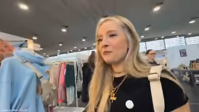 01:13:27Nach dem unerwarteten Fund geht die Streamerin weiter auf die Suche nach Mitbringseln und freut sich über die Möglichkeit, Gratisproben und kostenlose Produkte zu erhalten. Sie schwärmt von Lippenstiften und -pflege, insbesondere von einer bestimmten Marke, und stellt sich vor, welche Produkte sie mitnehmen könnte. Sie äußert auch die Sorge, sich im großen Messegelände zu verlaufen, und sucht nach Hinweisen auf den Ausgang, um den Weg zurück zum Auto nicht zu vergessen.
