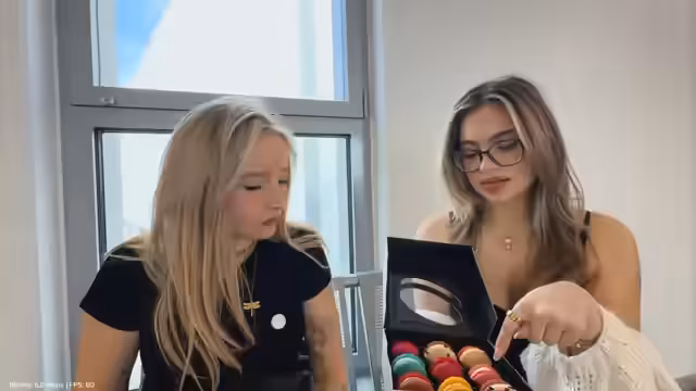01:26:00Nachdem sie einen Stand mit Macarons entdeckt hat, entscheidet sich die Streamerin gemeinsam mit Chad für den Kauf einer Box. Nach ausführlicher Beratung wählen sie verschiedene Sorten wie Red Velvet, Frozen Joghurt, Kinder Bueno und Nuss-Nougat. Nach dem Kauf finden sie einen Sitzplatz und beginnen mit der Verkostung. Die Meinungen gehen auseinander, da die Macarons sehr süß sind und die Konsistenz bei manchen Sorten nicht ganz den Erwartungen entspricht, was zu einer Diskussion über Qualität und Preis-Leistungs-Verhältnis führt.