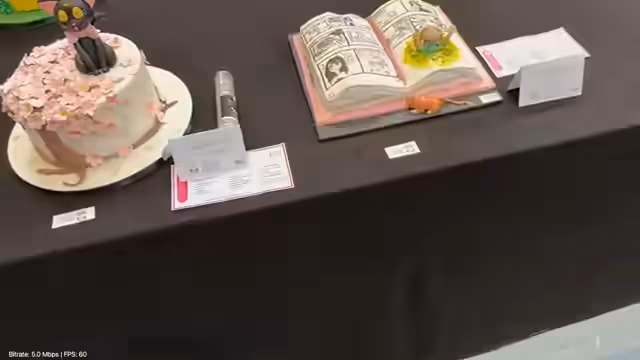 01:56:15Das Highlight der Messe ist für die Streamerin die Ausstellung der Wettbewerbstorten. Sie zeigt sich beeindruckt von der Detailtreue und Kreativität der Kunstwerke, darunter fantasievolle Figuren wie Tiere, Drachen, Häuser und sogar eine fliegende Torte. Sie bewundert die handwerkliche Perfektion und stellt sich die Frage, wie solche fragilen Gebilde transportiert werden. Eine Torte im Stil von Paris mit umgeknicktem Eiffelturm wird besonders hervorgehoben und als Favorit genannt.