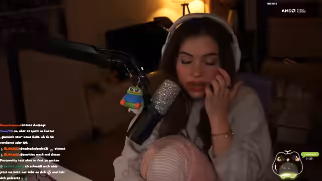 00:11:43Die Streamerin gibt persönliche Einblicke in ihren Alltag. Sie berichtet davon, dass sie aufgrund von Erschöpfung und Krankheit mehrere Stunden geschlafen hat, auch mit ihrer Mutter telefoniert hat, die ihr bei der Erholung geholfen hat. Erfreut erwähnt sie eine Nominierung für 'Gamerin 2026' und teilt mit, dass sie darüber auf ihrer Instagram-Story posten wird.