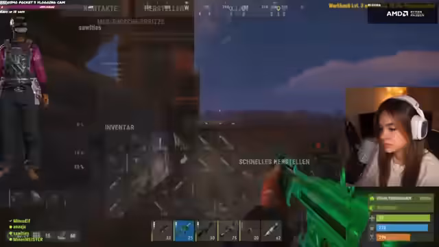 02:31:01Eine Spielerin entschuldigt sich für einen Versprecher und findet eine fast kaputte AK. Sie fragt nach dem Verbleib des Stuffs einer anderen Spielerin und plant, das Versteck zu öffnen. Die Gruppe versucht, einen Marker zu setzen, damit alle das Versteck sehen können. Eine Spielerin stirbt unerwartet und vermutet, dass sie erfroren ist. Die anderen Spielerinnen lokalisieren das Versteck in einem Busch in der Nähe eines kugelförmigen Felsens und bergen die Waffen. Sie planen, das Essen aus der Base zu holen und sich auf den Weg zu Annika zu machen. Eine Spielerin wird versehentlich abgelenkt und läuft durch Hölzer, wodurch sie Schaden nimmt. Die Gruppe grüßt neue Follower und bedankt sich für die Unterstützung. Es wird beschlossen, Armin offiziell in das Team aufzunehmen. Die Gruppe ist auf dem Weg zu Reaper's Base und weißt auf die gefährlichen Türme hin. Eine Spielerin erwähnt, dass sie zwei C4 dabei hat. Es wird über Essen gesprochen und eine Spielerin freut sich auf ihr vietnamesisches Sandwich. Die Gruppe diskutiert über die Qualität des Essens auf Malta und erinnert sich an frühere Erlebnisse.