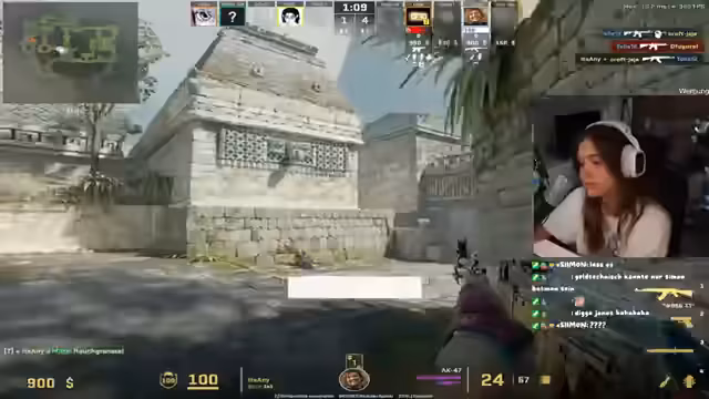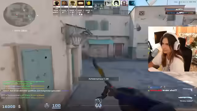 11:48:52Der Streamer kritisiert Felix dafür, dass er seit fünf Monaten über den Kauf einer Glockfade redet, aber noch nicht gekauft hat. Er erwähnt, dass er seit zwölf Stunden streamt und seine Katzen als seine Kinder bezeichnet. Während des CS:GO Gameplays gibt es technische Probleme und Verwirrung über das Teamverhalten, als ein Teammate den Streamer blockiert. Er äußert Frustration über das Verhalten seiner Mitspieler.