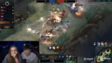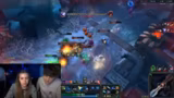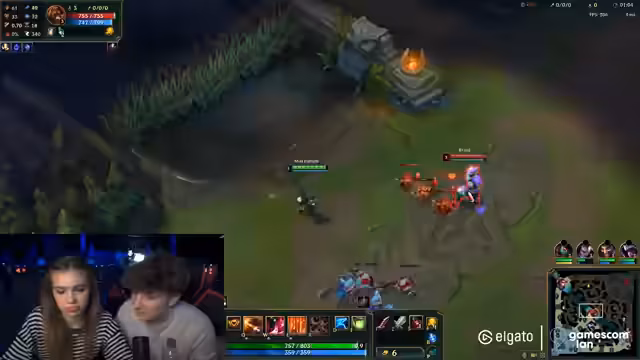 00:49:07Der Streamer gibt während der Kämpfe direkte, taktische Anweisungen. Er weist darauf hin, auf eine Distanz zu bleiben, sich an Teammates zu orientieren und Fähigkeiten wie die E und Q gezielt einzusetzen. Nach einem erfolgreichen Kampf wird zum Kauf von Items im Shop gedrängt, wobei die korrekte Auswahl und der Kaufmechanismus erklärt werden. Nach einem Tod wird zur Nutzung der Zeit im Shop geraten, bevor die Wiedereintritt ins Spiel erfolgt.