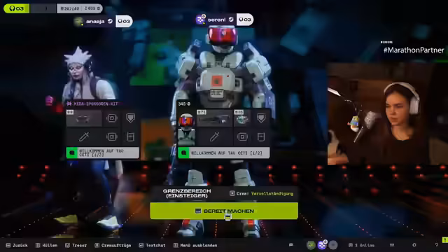 01:58:56Der Test des neuen Extraction Shooters Marathon beginnt. Die Streamerin wählt einen Healer-Agenten, obwohl sie betont, dass Healer nur zum Lachen sind. Gemeinsam mit ihrem Mitspieler geht es ins Spiel. Zuerst sind sie verwirrt über die Spielmechanik und die Gegnerplatzierung, finden aber schnell ins Spielgeschehen und übernehmen gemeinsam einen Auftrag. Die anfängliche Verwirrung weicht der Freude an der Entdeckung und dem Kampf gegen die Bots.