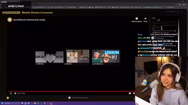 02:21:42Der Stream endet mit der Kategorie Bestes Timing Moment, bei der ein Clip im Vordergrund steht, in dem ein Streamer seine Ehre und Würde durch eine gefährliche Situation verliert. Der Streamer erklärt physikalische Zusammenhänge, wie den Bremsweg eines Autos, und stellt dabei humorvoll fest, dass die Beschreibung im Clip und seine eigene Erklärung fast identisch sind. Dies stellt den letzten Höhepunkt des Streams dar.