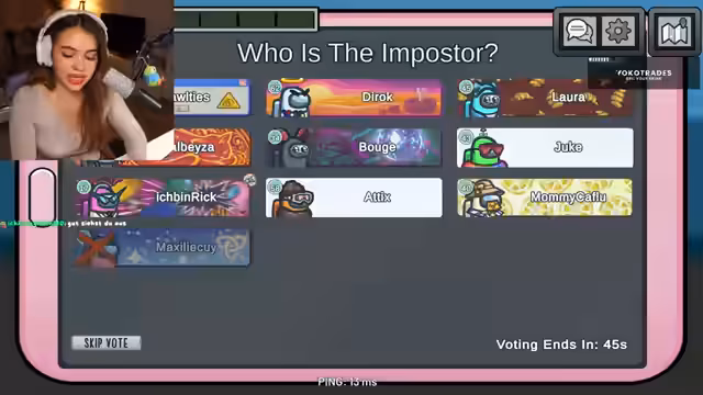 06:52:31Die Spieler diskutieren strategische Abstimmungen, um die Imposter zu eliminieren. Dabei werden Yuki und Rick als Hauptverdächtige genannt, da sie zusammen gerannt sind und in früheren Runden verdächtiges Verhalten gezeigt haben. Es wird auch erwähnt, dass Caro in den Camps war, was zu Spekulationen über ihre Rolle führt. Die Spieler versuchen, die Beweise zu sammeln und die logischsten Schlussfolgerungen zu ziehen. Die Diskussion ist hitzig und von gegenseitigen Anschuldigungen geprägt. Die Spieler sind sich uneinig über die beste Vorgehensweise, was zu weiteren Verwirrungen führt. Die Abstimmung rückt näher und die Spannung steigt.
