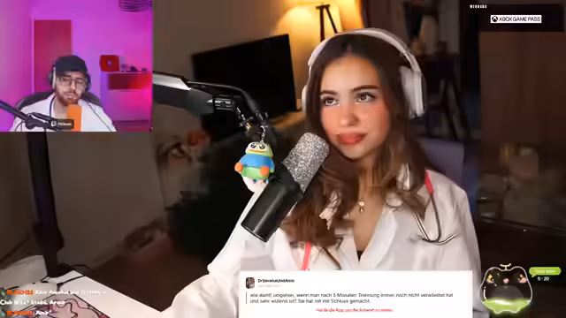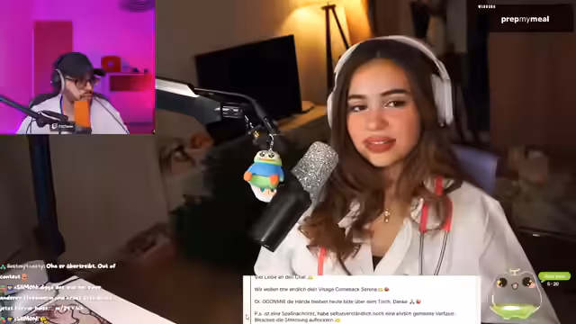 00:14:45Im weiteren Verlauf gibt die Streamerin einen Ausblick auf den Inhalt des heutigen Streams. Um 16 Uhr wird sie gemeinsam mit Amir auf anonyme Fragen und Probleme aus dem Chat eingehen. Sie kündigt an, dass sie sich sogar einen Doktortitel extra für den Stream besorgt haben, um die Rolle des 'DR SERENI' einzunehmen und den Kummerkasten authentisch zu gestalten.