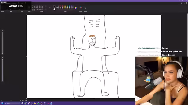 02:17:00Die Streamerin versucht, das Profilbild eines Zuschauers namens René zu zeichnen. Sie kämpft mit technischen Schwierigkeiten, da das Bild klein ist und sie die Details nicht gut erkennen kann. Während des Zeichenprozesses kommentiert sie humorvoll die Proportionen und Details, wie die Beine und den Bart. Sie zeigt das Originalbild im Vergleich zu ihrer Zeichnung und bittet die Zuschauer um Feedback. Obwohl sie zugibt, dass die Zeichnung nicht hundertprozentig detailgetreu ist, ist sie der Meinung, dass man das Profilbild von René erkennen kann, und hofft, dass es ihm gefällt. Sie bewertet ihre Zeichenkünste selbstkritisch mit 'zwei von zehn' in Bezug auf Realismus.