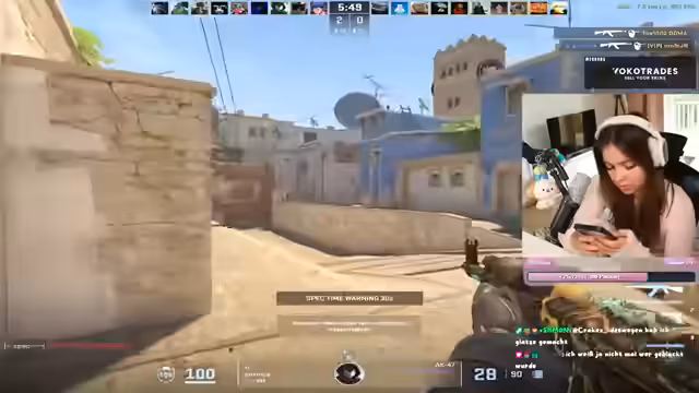 01:39:03Der Streamer fährt mit dem Spielen von CS:GO in Solo-Q fort. Es folgt eine Runde, die als besonders knapp und spannend beschrieben wird. In der Unterhaltung mit dem Chat kommen unterschiedliche Spiele zur Sprache, darunter Call of Duty: Warzone. Es gibt Lob für Lukas' Stimme. Der Streamer zeigt sich motiviert und interagiert stark mit der Community, wobei er auch auf Kommentare zur Performance anderer Spieler eingeht und die Nervosität um sein eigenes AWP-Spiel thematisiert.