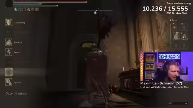 10:38:47Nach fast elf Stunden Spieldauer beendet der Streamer die Session, ohne den finalen Boss Godfrey bezwungen zu haben. Er blickt auf einen sehr produktiven Tag zurück, an dem drei der schwierigsten Bosse im Spiel gelegt wurden: Malekith, das Godskin-Duo und der Feuerriese. Für den nächsten Tag werden Pläne angekündigt: morgens eine IRL-Stream von der Süßigkeitenmesse in Köln mit Marc Eggers und abends weiter Elden Ring. Zum Abschluss wird ein Raid zu Cyberpunk durchgeführt und allen Unterstützern, darunter Eli, Exolution und Reapers, wird für ihre Unterstützung gedankt.