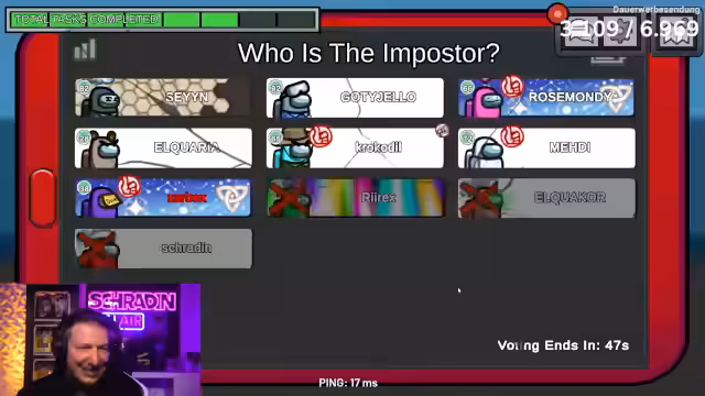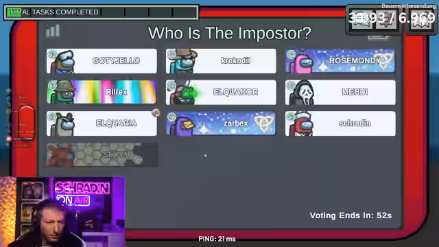 04:13:00Nach einer weiteren hitzigen Diskussion und einem Voting gewinnt Schradin überraschend als Imposter. Die Spieler sind schockiert und fragen sich, wie er es geschafft hat, so gut zu spielen, obwohl er sich selbst als schlecht empfindet. Eli ist besonders fassungslos und fragt sich, wie Schradin während des Spiels World of Warcraft spielen und trotzdem gewinnen konnte. Schradin genießt seinen Sieg und provoziert die anderen Spieler, die ihn nicht gelobt haben. Er betont, dass er alles alleine durchgespielt hat und dass Rose ihn gecarryt hat. Die Spieler sind immer noch verwirrt und versuchen, die Ereignisse zu rekonstruieren, um zu verstehen, wie Schradin gewinnen konnte. Die Diskussion wird von emotionalen Ausbrüchen und gegenseitigen Beschuldigungen begleitet, wobei die Spieler versuchen, die Wahrheit herauszufinden und den wahren Imposter zu entlarven.