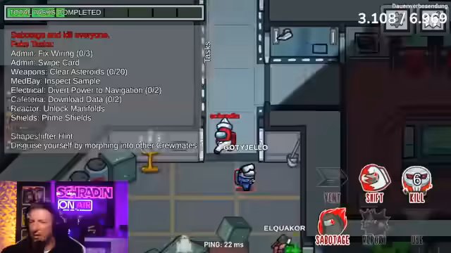 02:47:29Eine weitere Among Us-Runde führt zu einer heftigen Kontroverse, bei der Eli als Shapeshifter verdächtigt und schließlich aus dem Spiel gewählt wird. Ein Spieler namens Sam erklärt detailliert, wie Eli ihm von Upper Engine Cafeteria bis Communications gefolgt sei. Nach einem Vent-Bug, bei dem Eli plötzlich verschwand und dann vor verschlossenen Türen in der Cafeteria auftauchte, wo eine Leiche lag, wird Eli als Imposter identifiziert. Obwohl Eli vehement seine Unschuld beteuert und auf die Möglichkeit eines Shapeshifters hinweist, der vor ihm weggesprungen sein könnte, wird er von den anderen Spielern nicht gehört. Die Situation eskaliert, als Eli frustriert das Spiel verlässt, da er sich unverstanden fühlt und die Dummheit der anderen Spieler beklagt, die seiner Meinung nach einen offensichtlichen Kill übersehen haben. Die Diskussion dreht sich um die Glaubwürdigkeit von Zeugenaussagen und die Schwierigkeit, in der Hitze des Gefechts die Wahrheit von Täuschungen zu unterscheiden. Die Spieler sind fassungslos über die Ereignisse und die vermeintliche Unfähigkeit, logisch zu denken, was zu einem weiteren Verlust in der Runde führt.