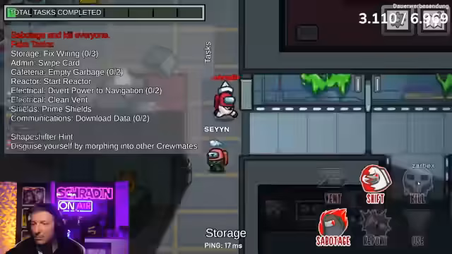 03:44:56Nach einem weiteren Kill bei den Lichtern entbrennt eine hitzige Diskussion über die Identität des Imposters. Ein Spieler kann Schradin safen, da sie gemeinsam die Lichter repariert haben. Es wird versucht, die Bewegungen der Spieler nachzuvollziehen und Alibis zu überprüfen. Eli wird verdächtigt, von einem Reaktor gekommen zu sein, wo keine Aufgabe ist, und dann die Lichter ausgeschaltet zu haben. Die Spieler sind sich uneinig, wen sie voten sollen, und die Diskussion wird von emotionalen Ausbrüchen begleitet. Schradin wird als 'Clownsnase' bezeichnet und es wird spekuliert, dass er der Imposter sein könnte. Die Spannung im Spiel steigt, während die Spieler versuchen, die Wahrheit herauszufinden und den wahren Imposter zu entlarven.