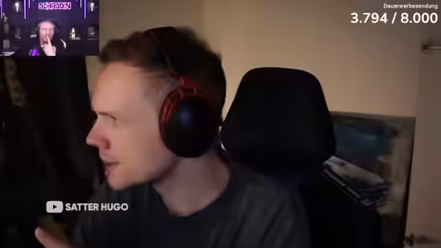 03:27:20Nach der Enttäuschung durch den Pokémon-Run wechselt das Stream-Format. Der Fokus verlagert sich von dem interaktiven Gameplay zu einer Reaktionssession. Die Streamer schauen sich gemeinsam einen neuen Clip von 'Satter Hugo' an. Dieser Übergang dient als Ablenkung und eine entspanntere Phase, nachdem der Hauptinhalt des Streams gescheitert ist.