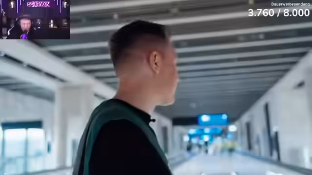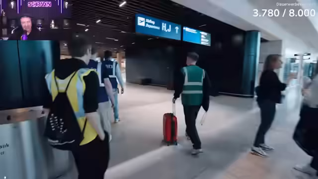03:54:16Der Streamer startet eine Aktion im neuen Terminal 3 des Frankfurter Flughafens. Seine Aufgabe ist es, als Testpassagier eine Waffe durch die Sicherheitskontrolle zu schmuggeln. Er erhält von einem Kameraden ein Messer und versucht, es unauffälllich in seinem Gepäck zu verstecken. Gleichzeitig kommentiert er den Testbetrieb und die Architektur des neuen Terminals.