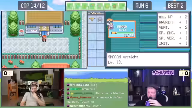 01:35:26Nach dem Neustart beginnt der gefährliche Weg durch den Bertania-Wald. Es kommt zu mehreren gefährlichen Situationen mit wilden Pokémon wie Garados, von denen sich Trymacs durch Flucht entfernen muss. Auch der erste Trainerkämpfe werden bestanden, was einen neuen persönlichen Rekord darstellt. Nach dem Kauf von Sonderbonbons wird das letzte verbleibende Pokémon, Smogazam, auf das maximale Level gebracht, um den ersten Orden der Arena zu erreichen.