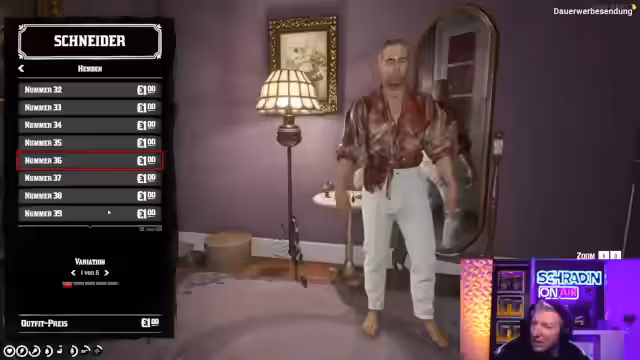 01:00:21Im Kleiderladen angekommen, beginnt der Streamer mit der Auswahl eines neuen Outfits. Er wünscht sich eine schicke Hose und ein Hemd, ist aber von der Auswahl überfordert und stößt auf technische Schwierigkeiten bei der Bedienung des Spiemenüs. Er hat Probleme, Gegenstände zu entfernen und neue Kleidungsstücke anzuziehen, was zu einem unterhaltsamen aber auch frustrierenden Einkaufserlebnis führt.