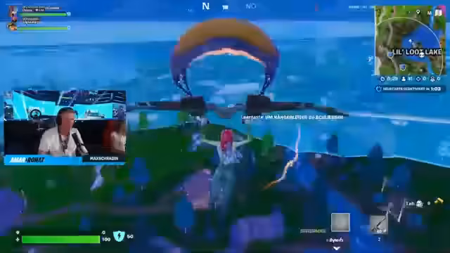 02:45:20Der Stream konzentriert sich auf das Gameplay in Fortnite mit dynamischer Ingame-Kommunikation. Der Spieler ist ständig auf der Suche nach strategischen Vorteilen, platziert Bunker und Drucker und versucht, sich in der Zone zu bewegen, während er Gegnern ausweicht. Der Chat gibt laufend Hinweise zur Bewegung und zur Platzierung von Gegenständen. Erster Höhepunkt ist der dritte Platz in einer Runde, was durch das Sammeln von acht Gilde-Punkten belohnt wird und für Motivation sorgt.