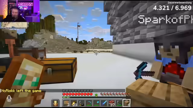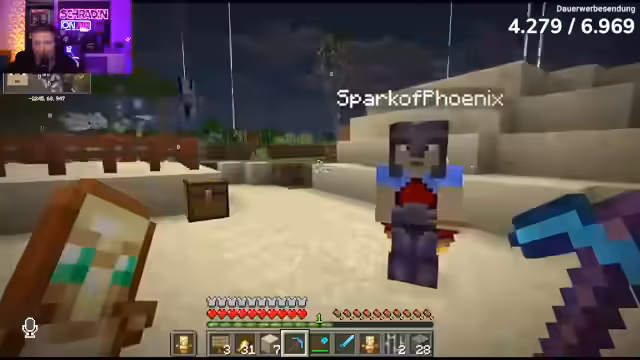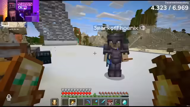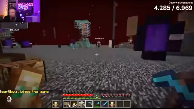 04:04:26Nach einer langen Farm-Session im Nether wird der Streamer von Spark unbemerkt zurück zu seiner Basis geführt, was ihn überrascht und amüsiert. Er erhält TNT von Fabo für sein geplantes Kraterprojekt. Die Aufmerksamkeit richtet sich dann auf das Craften der Netherite-Rüstung. Spark erklärt dem Streamer die Nutzung von Shulker-Boxen als Rucksäcke in der Endertruhe, um Inventarplatz zu sparen und Gegenstände zu organisieren. Der Streamer zeigt sich beeindruckt von den fortgeschrittenen Minecraft-Kenntnissen Sparks und seiner langen Spielerfahrung seit 2011. Es kommt zu einem spielerischen Vergleich zwischen Spark und BastiGHG in verschiedenen Minecraft-Kategorien, wobei Spark seine Stärken in Programmierung und Redstone hervorhebt, während er PvP-Erfahrung weniger wichtig findet. Der Streamer demonstriert seine eigenen Lernfortschritte, indem er erfolgreich einen Crafting-Table bedient und sich im Nether zurechtfindet, was er vor einer Woche noch nicht gekonnt hätte.