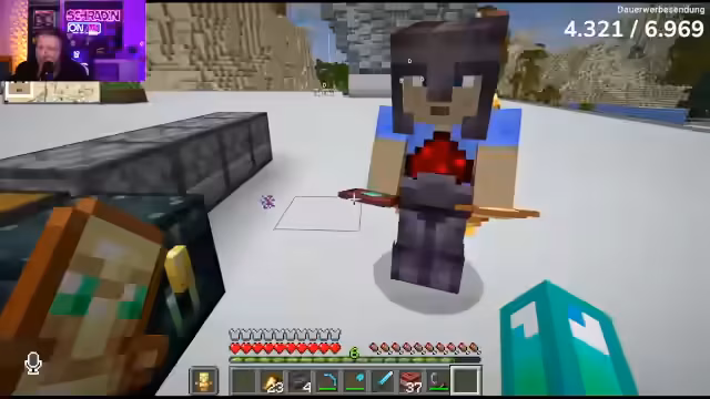 04:36:37Der Streamer begibt sich auf die Suche nach Monte's Haus, um seinen Plan des TNT-Kraters umzusetzen. Er versucht, sich unter den Berg zu graben, hat aber Schwierigkeiten, die genaue Position zu finden und sich nicht zu verirren. Spark erklärt ihm die Nutzung der F3-Koordinatenanzeige in Minecraft, um die genaue Position zu bestimmen. Während seiner Suche wird er von anderen Spielern angegriffen und muss ausweichen. Er wird von 'Koko' und 'Reapers' kontaktiert, die ihn nach seinem Vorhaben fragen. Er erklärt seinen Plan, einen Krater unter Monte's Haus zu bauen und mit TNT zu füllen. Die anderen Spieler warnen ihn, dass Fliegen in der Euro-World nicht erlaubt ist und dass eine zu große Sprengung zum Bann führen könnte. Trotz der Warnungen und der Schwierigkeiten bei der Orientierung setzt er seine Mission fort, während er sich mit den anderen Spielern über ihre Bauwerke und die Schweizer Server unterhält.