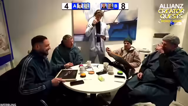 11:08:30Die Ankunft bei der Allianz Arena markiert den Ort der finalen Challenge. Die Teilnehmer fühlen sich von der Atmosphäre und der Beleuchtung des Stadions beeindruckt. Eine Diskussion über Fußballvereine entfacht, wobei jeder seine Favoriten im Chat postet. Dies weckt eine große Begeisterung und das gemeinsame Gefühl, Teil eines besonderen Events zu sein. Die Stimmung ist auf einem Höhepunkt, als die Gruppe die letzten Vorbereitungen für das Finale trifft.