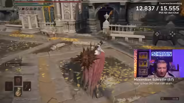 05:11:09In diesem Abschnitt des Elden Ring-Gameplays geht es um die Frustrationen und Herausforderungen beim Kampf gegen den Feuerriesen. Schradin spricht über seine bisherigen Versuche, bei denen er sich töten ließ, um keine Zeit zu verschwenden, und betont die Wichtigkeit des Loslassens. Es wird über die Schwierigkeit, den Feuerriesen zu besiegen und die damit verbundene Anstrengung diskutiert. Schradin äußert seinen Ehrgeiz, den Boss zu besiegen, obwohl er frustriert ist und überlegt, die Tränke anders zu verteilen. Es wird auch die Möglichkeit einer Übertragung im Discord angesprochen, um das Gameplay zu zeigen, aber es gibt technische Schwierigkeiten, da das Team nur Schradins Gesicht sieht. Verschiedene Lösungsansätze werden ausprobiert, um das Gameplay im Discord sichtbar zu machen, aber es treten weiterhin Probleme auf. Trotz der technischen Schwierigkeiten und der Frustrationen beim Kampf gegen den Boss, wird der Spaß am Spiel betont. Schradin erhält Coaching von Danny, der ihm Tipps zur Strategie gibt, insbesondere die Hände des Gegners anzugreifen und die richtigen Tränke zu verwenden. Danny lobt Schradins Fortschritte und gibt Ratschläge zur Verbesserung der Taktik, einschließlich des Einsatzes von R1-Attacken und des Auslösens von Blutungsschaden. Es wird auch über die Bedeutung des Mental Games und die richtige Ausrüstung diskutiert. Trotz der Herausforderungen und Rückschläge bleibt Schradin entschlossen, den Boss zu besiegen und seinen Sonntag zu retten.