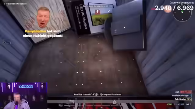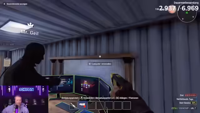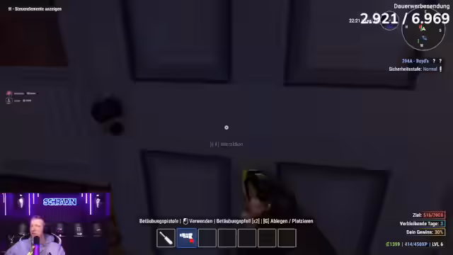 03:08:07Der Stream konzentriert sich auf einen Einbruch in ein Haus, wobei der Spieler zunächst unerwartet auf leere Räume stößt und technische Schwierigkeiten wie fehlende Monitore und Probleme mit der Tastatur berichtet. Er räumt das Haus systematisch aus, tasert die Bewohner, wenn sie aufwachen, und trifft Entscheidungen über die Mitnahme von Beutegut. Die Aktion endet mit der Flucht vor der Polizei und der Feststellung, dass der Ertrag gering war, da das Haus bereits geleert war. Die Ankündigung folgt, als nächstes einen Laden auszurauben.