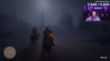 04:56:18Die Schlacht gegen die Wachen von Fort Wallace entbrennt voll, als der Streamer und sein Verbündeter auf mehreren Gegnern gleichzeitig feuern. Die Situation ist chaotisch, der Streamer verliert die Übersicht und wird schnell getroffen. Innerhalb kurzer Zeit stirbt sein Charakter, was zu einem Neustart vom letzten Kontrollpunkt führt und den Streamer frustriert zurücklässt.