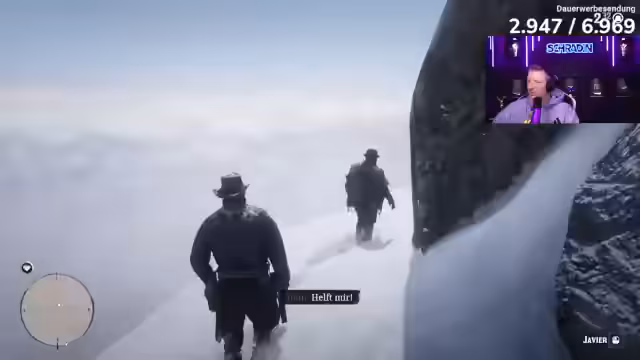 04:43:54Eine Mission wird gestartet, bei der Arthur und Javier nach einem vermissten Bandenmitglied, John Marston, suchen. Unterwegs werden sie von einer Wölfegruppe angegriffen. Der Streamer kämpft sich durch die hektische Situation, verliert dabei Ausdauer und muss sich auf die Hinweise aus dem Chat verlassen, um die Wölfe mit der Waffe zu verteidigen und die Mission trotz eines schlechten Ergebnisses abzuschließen.