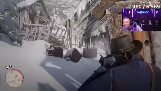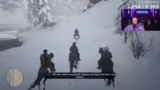 03:50:17Nach dem erfolgreichen Ende des Einbruchs-Simulators erfolgt ein Wechsel des Spiels zu Red Dead Redemption, dessen Story-Modus nun gespielt wird. Der Streamer, ein Neuling im Spiel, erhält Anleitungen aus dem Chat zur Steuerung und Charaktererstellung. Er beginnt das Spiel mit dem Charakter Arthur Morgan und erleitet eine Szene, in der die Bande von Dutch einen Mordanschlag überlebt und ihre Basis neu aufbaut.