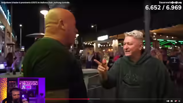 03:18:13Es wird über die Arbeit als Türsteher auf Mallorca gesprochen, wobei Ramon Ademes erklärt, dass er keine betrunkenen oder unangemessen gekleideten Gäste in den Club lässt. Er beschreibt, wie sich die Situation in den letzten Jahren verändert hat und die Leute aggressiver geworden sind. Es wird überlegt, einen IRL-Stream mit Zabex auf Mallorca zu machen, falls Marc Eggers dort einen Auftritt hat. Ramon telefoniert live und spricht Spanisch. Es wird überlegt, Zabex mit einem Auftritt von Marc Eggers zu überraschen und einen gemeinsamen Song zu machen. Es wird überlegt, ob Security benötigt wird. Im Club werden Taschen kontrolliert und auf Alkoholpegel geachtet. Es wird überlegt, ob Jürgen Milski zu Rentnatur 2.0 eingeladen werden soll, aber dann müsste jemand anderes gehen. Jürgen Milski verdient sein Geld mit Auftritten auf Mallorca und hat ausgesorgt. Es wird überlegt, was mit den Gästen passiert, die zu voll sind und nicht mehr stehen können. Es wird über die Top-Liner Peter Klein und Yvonne Wölke gesprochen, die im MK auftreten. Es wird über die Sicherheit der VIPs gesprochen, die Fanstress haben könnten. Ramon führt die Sänger zur Bühne, mitten durch den Club. Die Prominenten sind entspannt und gehen durch die Massen, weil sie Fan-Nah sind.