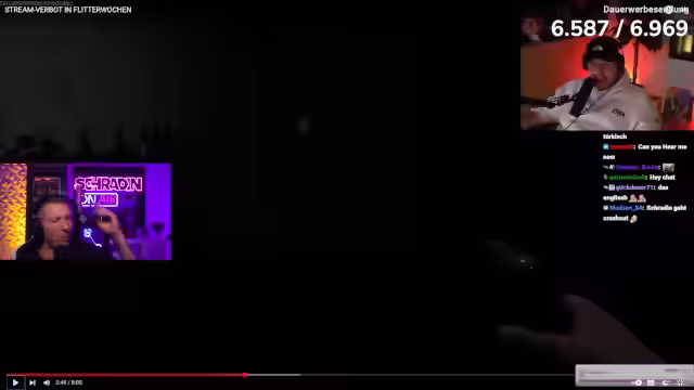 02:19:28Es wird über den Urlaub von Zabex und dessen Streaming-Verhalten diskutiert. Der Streamer fragt sich, ob man als Streamer auf die Anzahl verlorener Subs achtet, wenn man eine Woche nicht gestreamt hat. Ein Zuschauer bringt das Thema Pornobranche ins Spiel und schlägt ein Milfding mit der Mutter des Streamers vor, was dieser ablehnt. Der Streamer spricht über seinen Rauchstopp seit dem 1. September und die damit verbundenen Herausforderungen, insbesondere im Hinblick auf eine Wette mit Zabex. Er erklärt die Bedingungen der Wette und betont, dass er seitdem keine Zigarette mehr geraucht hat. Es wird kurz das Thema Promi Big Brother angeschnitten, wobei es darum geht, den Rauchern im Haus den Entzug zu erschweren. Der Streamer telefoniert mit Jens, um sicherzustellen, dass Zabex und Monte ihre Vapes bei Promi Big Brother abgenommen bekommen, um einen Crashout von Zabex zu provozieren.
