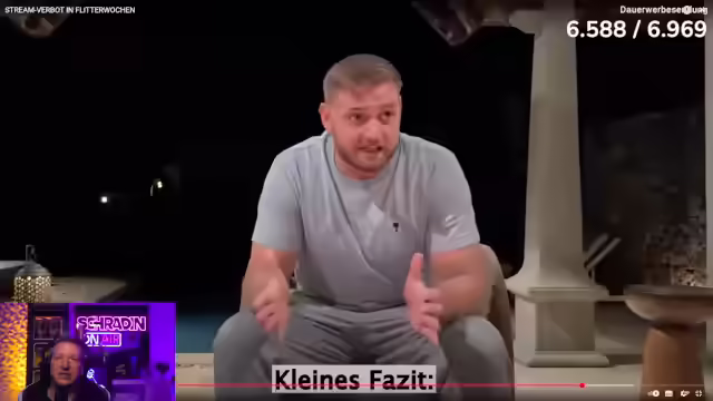 03:02:36Es gibt zu viele Maulwürfe im Chat, die Informationen an Zabex weitergeben. Trotzdem betont er den Zusammenhalt mit Zabex und Mont, besonders auf der kommenden Wohnmobiltour. Er kündigt eine Gaming-Olympiade mit Rosemondi, Krokobos und Zabex an, sowie einen Podcast mit Valoronte am Mittag. Abends ist die Gaming-Olympiade und Horror mit Zabex geplant. Er erwähnt weitere Streaming-Pläne für die kommenden Tage, inklusive eines Streams am Wochenende und eventuell einem weiteren Stream unter der Woche, abhängig von den Vorbereitungen für die Oktoberfest-Tour. Abschließend wird ein Clip aus "Achtung Kontrolle" gezeigt, der sich mit feiernden Urlaubern auf Mallorca beschäftigt.